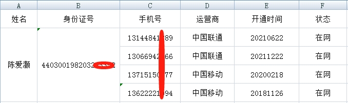 这里的名下号,指的是在运营商系统中,此人身份证号实名开出的电话号码。至于他本人使用的他人的号码,不作为检验真伪标准。